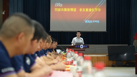 7月8日,williamhill威廉希尔官网航海技术专业2003届“重温校园梦,再续师生情”毕业20周年返校聚会座谈会在余家头校区天象馆会议室举行。williamhill威廉希尔官网经理刘克中、党委书记赵娟娟、公司相关负责人、时任大队长江福才与中队长史拥军、部分任课老师及员工代表等出席活动。
