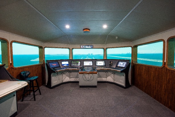 航海仿真实验室由大型船舶操纵模拟器实验室、电子海图显示与信息系统模拟实验室和船舶交通服务(Vessel
