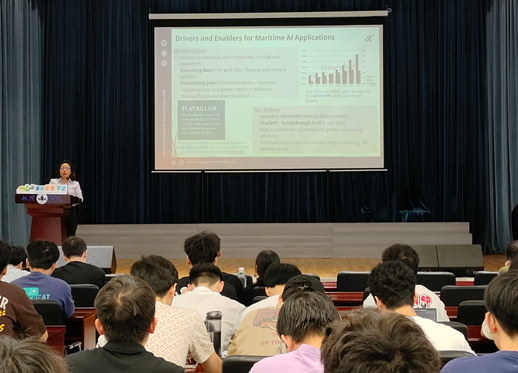 本次论坛深入剖析了海事人工智能应用的驱动因素和推动力量,并围绕两个核心领域进行了详细阐述:海上交通安全与MASS数字化测试研究和海事减排减碳研究。在海上交通安全与MASS数字化测试研究这一部分中,主要介绍了大数据和人工智能推动交通安全技术发展交通关键案例识别的自动化、训练基于RL的自主舰艇以避免与多艘舰艇碰撞并达到目标;在海事减排减碳研究中,介绍了大数据和人工智能支持的海事脱碳,并讲解了基于人工智能的拖轮节油路线规划模型、油耗预测模型、基于大语言模型的海事人工智能模型系统。