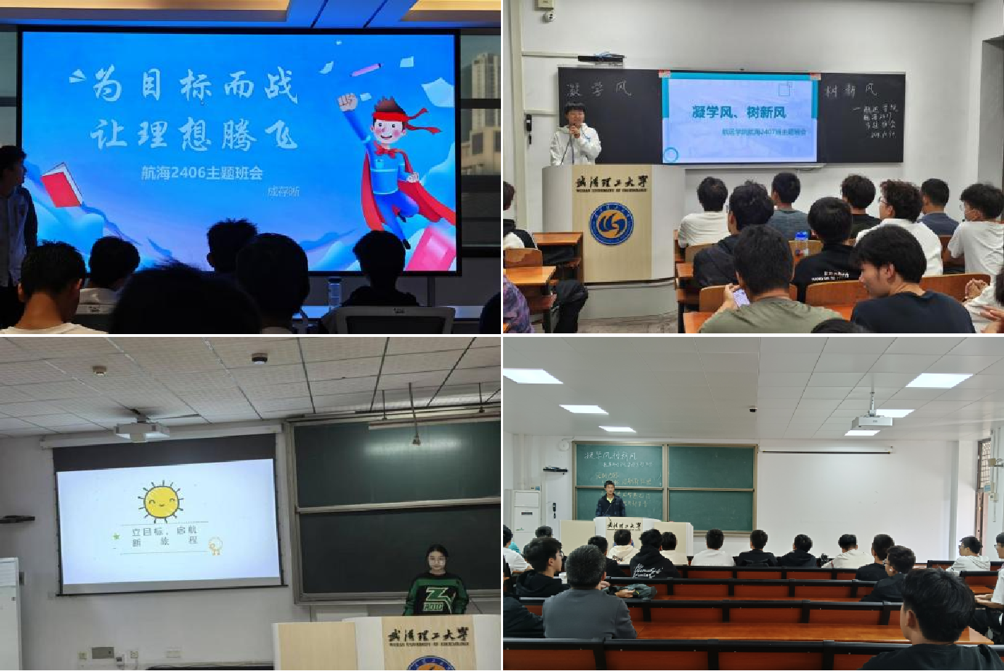 航海技术2407班开展“大学期间要完成的N个小目标”主题交流,李婉桐组织同学们说说自己大学期间要完成的N个小目标,同学讨论非常积极,发言踊跃,明晰了老员工涯规划。航海技术2406班开展书香校园主题活动,鼓励大家“读一本书、走一段路”,丰富自己兴趣爱好,培养自己阅读爱好,促进思想道德素质和科学文化素质协调发展。