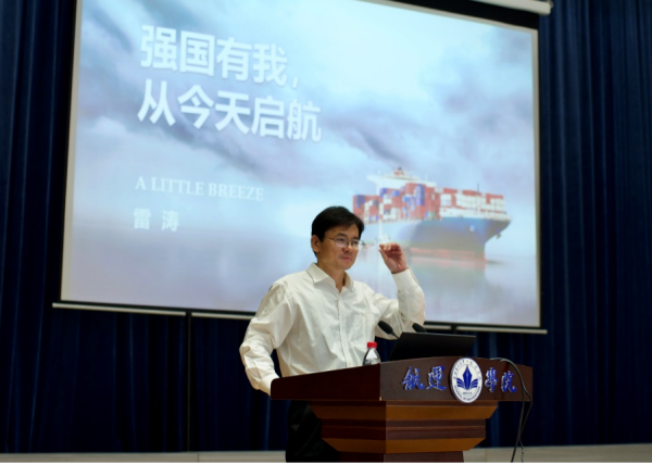 雷涛船长分享了他精彩的航海经历和趣闻,讲述了大海中面对的最难忘的挑战,强调了新时期海员应具备的素质,包括领导力、沟通技巧、环境保护意识和应急处理能力等。雷涛船长提出了处理航海职业与个人发展之间的见解,鼓励员工积累多样化的文化知识和经验,以适应不断变化的航运环境,鼓励同学们多视角了解航海世界。