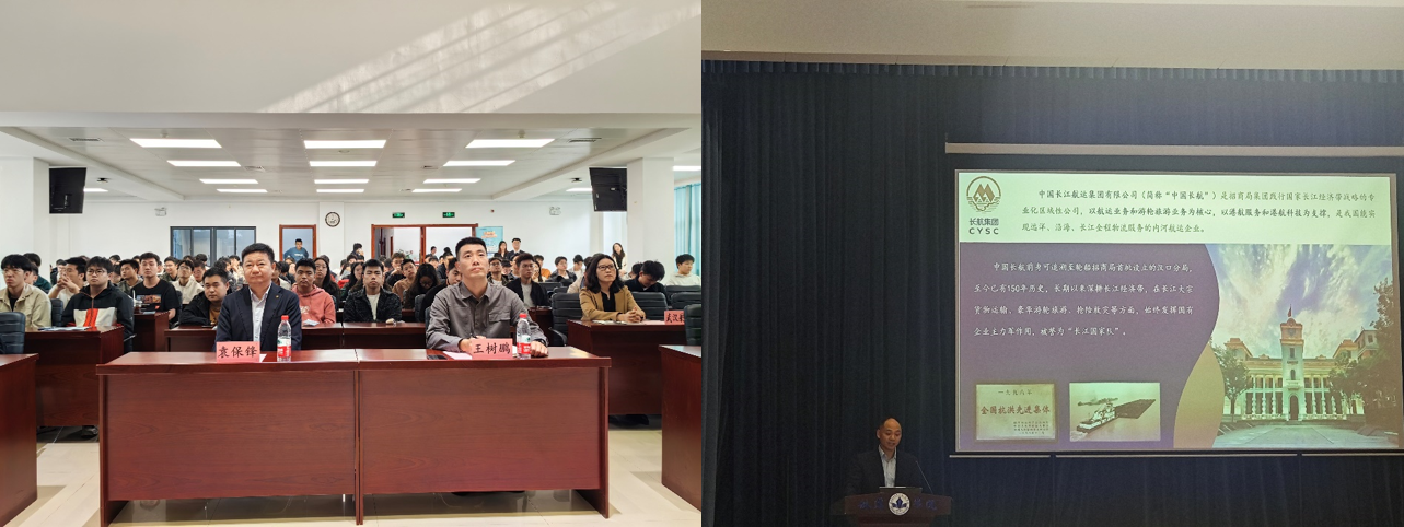 11月4日下午,中国长江航运集团有限公司(简称长航集团)来校开展2025届校园招聘宣讲会。长航集团人力资源部部长袁保锋、副部长刘铭友及下属单位负责人,公司williamhill威廉希尔官网经理刘克中、公司党委副书记王树鹏、学工部就业市场办公室主任李俊睿参加座谈会,就公司团队建设、人才队伍、科学研究、人才培养等方面的情况作了简要交流。