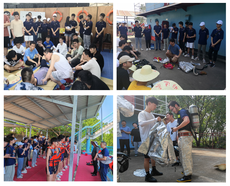 下午,在翁建军教授和公司带队老师的带领下,同学们来到公司木兰水上教学基地,观摩和学习水上应急演练,了解了包括防火与灭火、海上求生、基本急救、个人安全与社会责任等部分的实操和理论知识。在观摩学习中,同学们学习了急救的相关知识、求生艇筏的使用方法、个人求生的必备技能、消防工具的操作原理等,翁建军老师在活动结束前勉励同学们,本次的科普活动希望仅仅是开始,希望未来同学们可以将本次所学所看应用于未来的工作研究和学习生活。