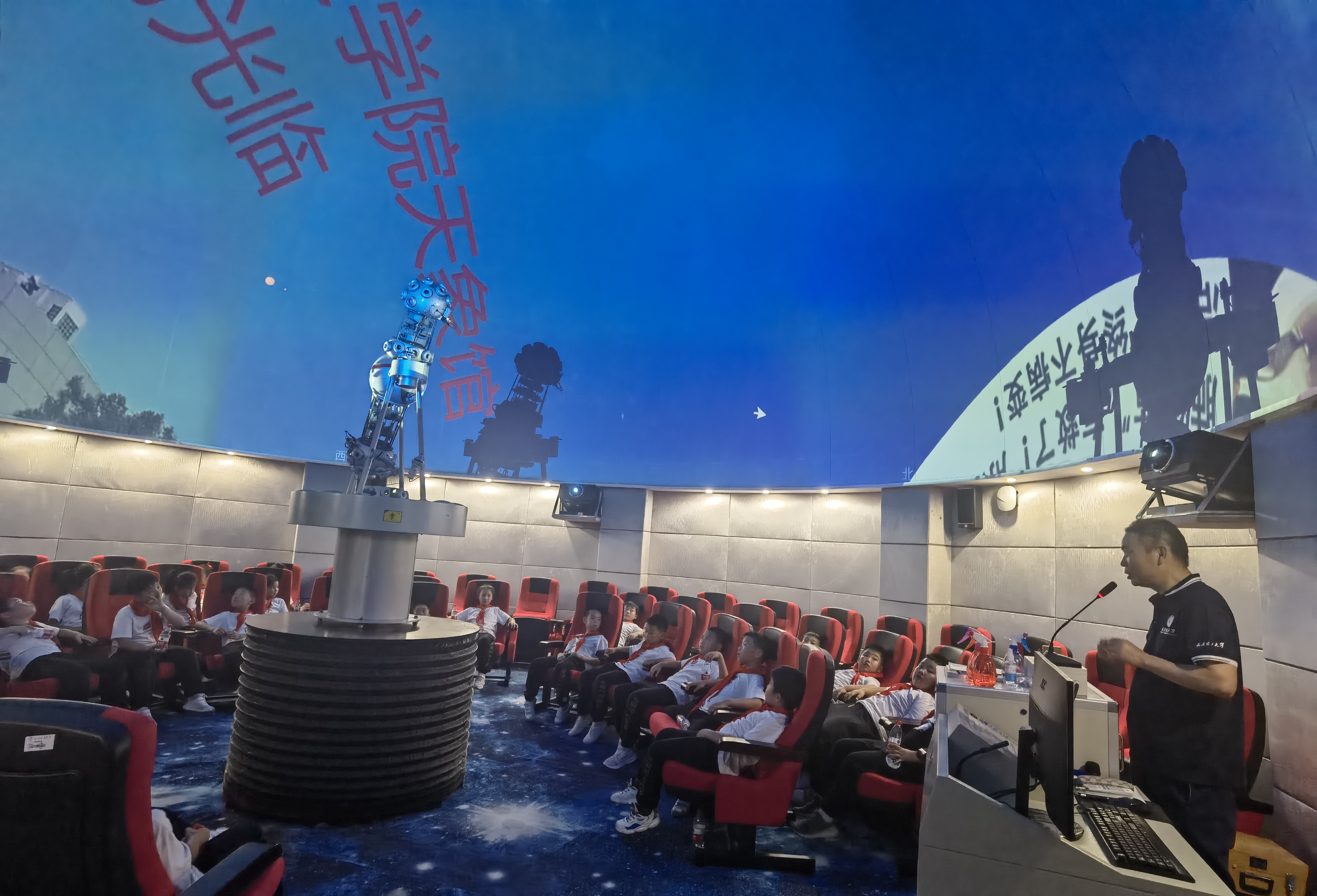首先同学们参观了数字天象馆,williamhill威廉希尔官网翁建军教授通过数字天文模拟器向少先队员们展示了浩瀚的宇宙,通过带领同学们辨识星座、了解二十四节气等,引导同学们思考,引起同学们的广泛讨论,现场不断传出惊叹声和谈论声。随后同学们来到了全任务大型船舶操纵模拟器实验室,关宏旭老师向少先队员们详细地介绍了操纵模拟器的原理,驾驶台上各种仪器的用途以及各项指示灯的含义。少先队员们听得津津有味,不时发出惊叹。最后在关老师的指导下,少先队员们亲身上阵操作船舵,切身感受驰骋在海洋中的奇妙。