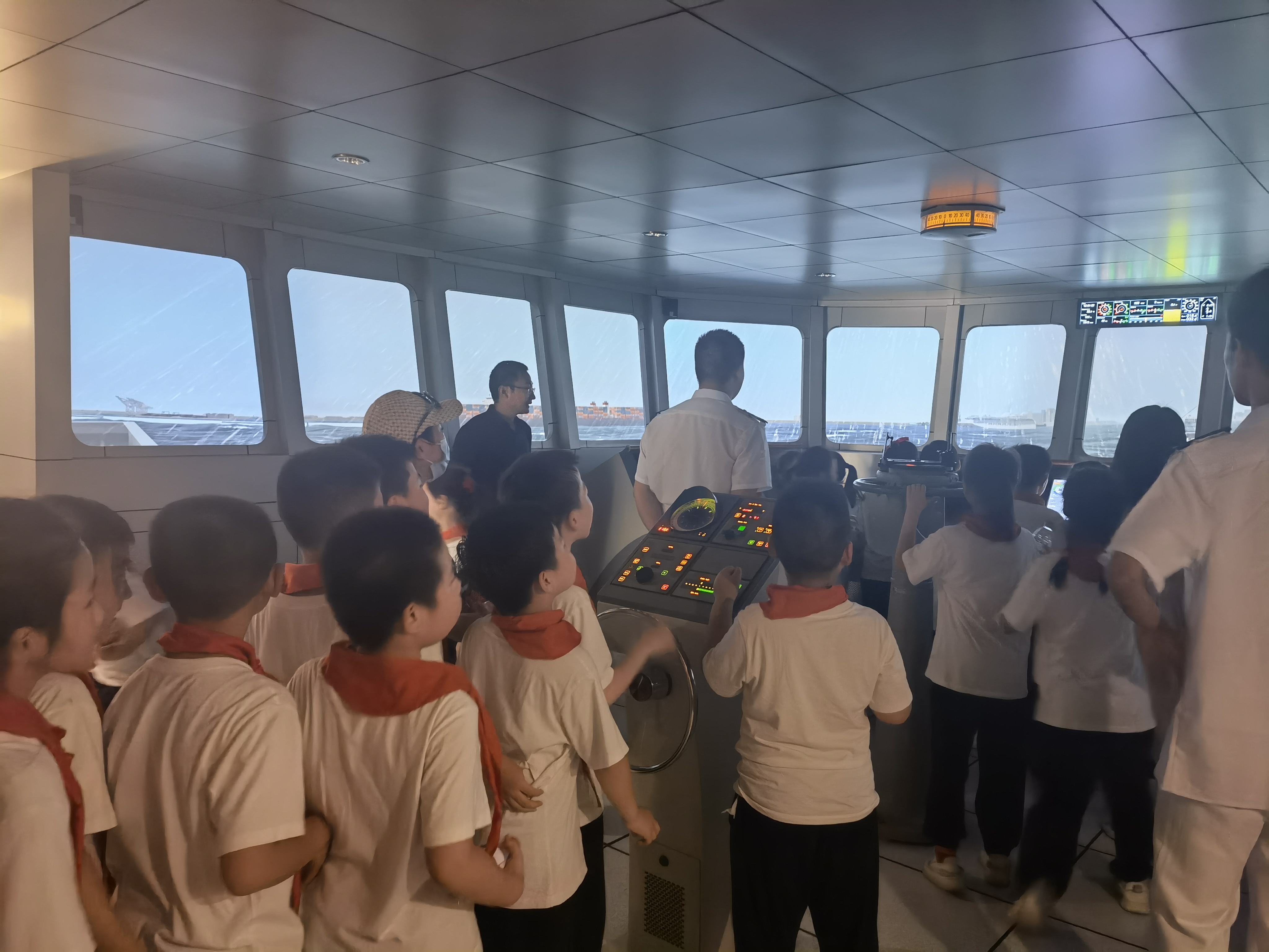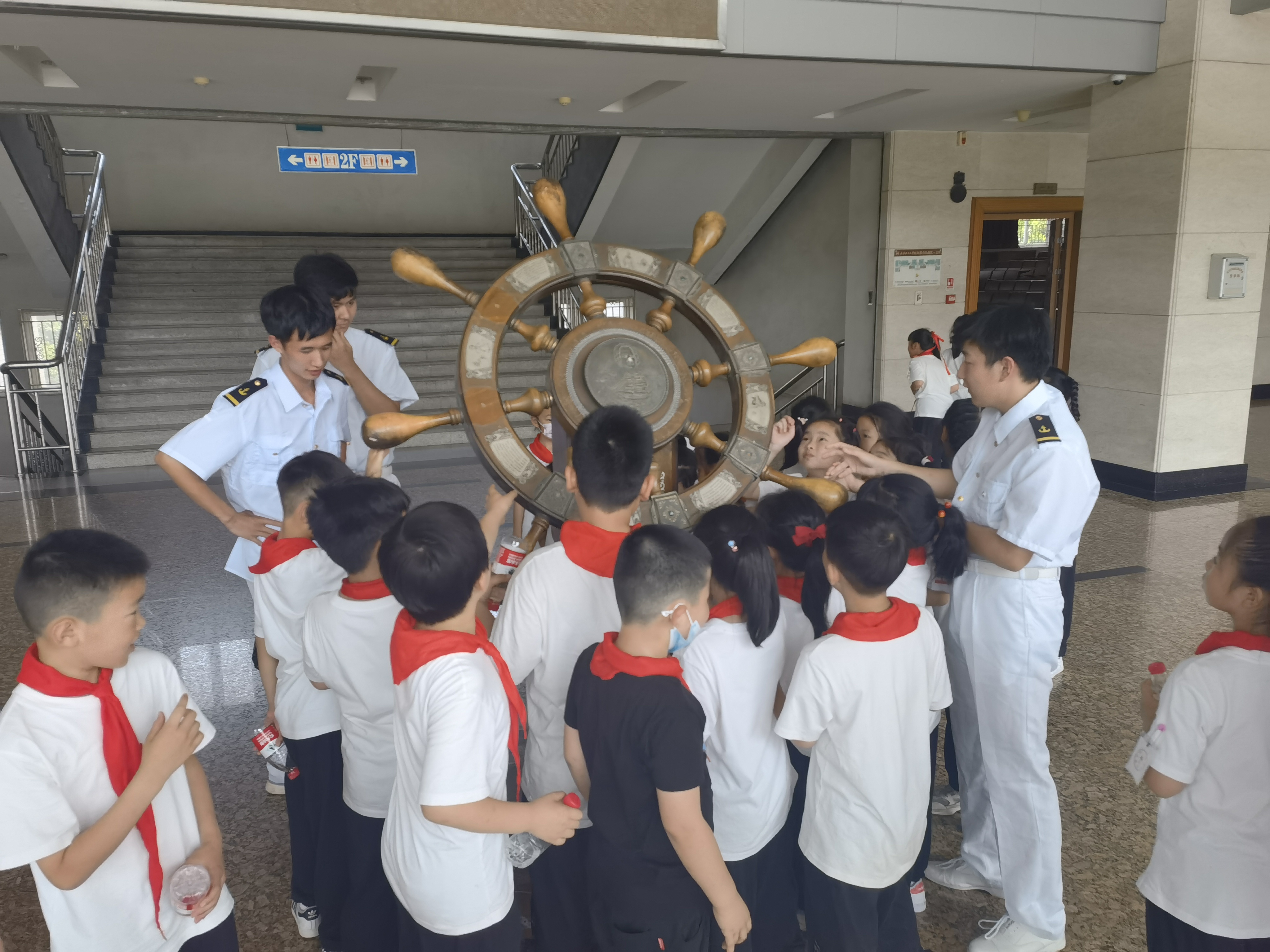2021年6月8日下午1时,williamhill中文官网余家头校区迎来了一批特殊的航海文化爱好者——余家头小学四十余名少先队员,少先队员们与williamhill威廉希尔官网航海文化学习研究会共同开展科普教育活动。在公司党委副书记冯承金的陪同下,周老师和杨老师带着少先队员们参观了航海数字天象馆和全任务大型船舶操纵模拟器实验室。
